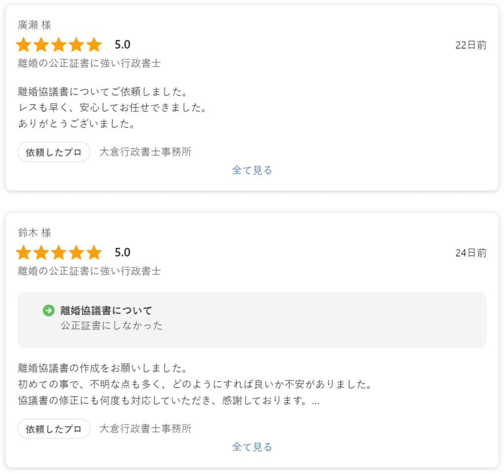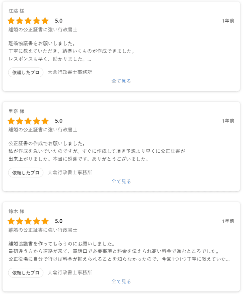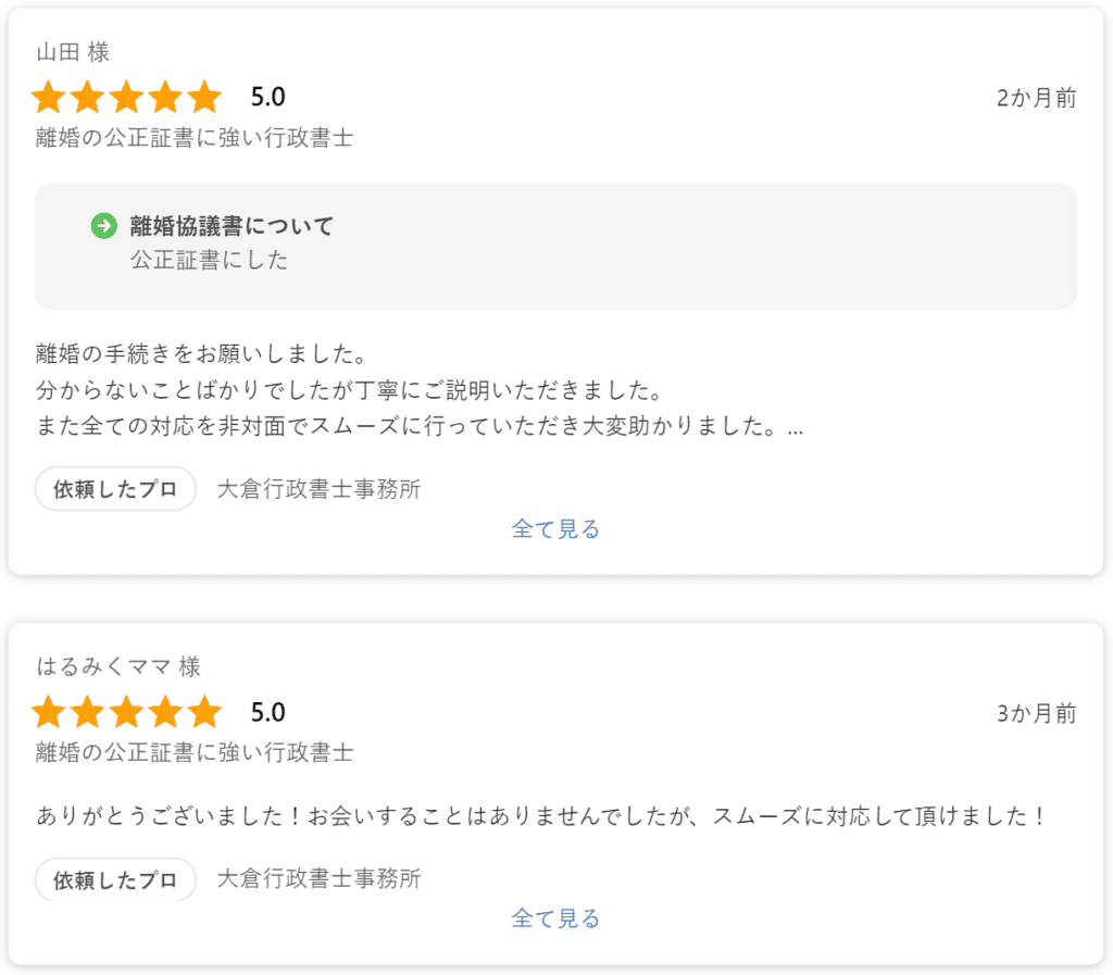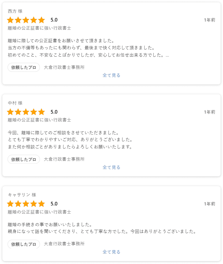 当事務所にこれまでいただいたお客様の声の一部でございます。