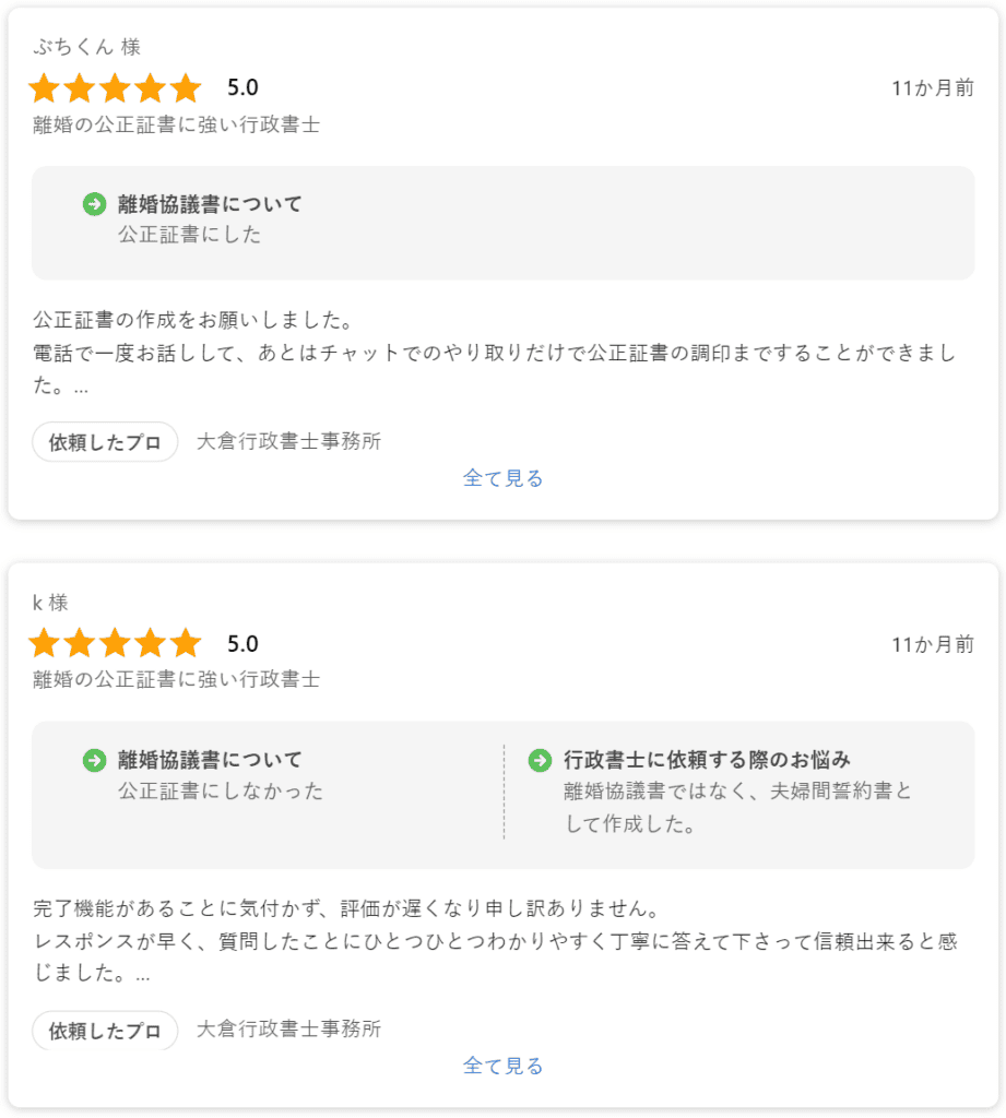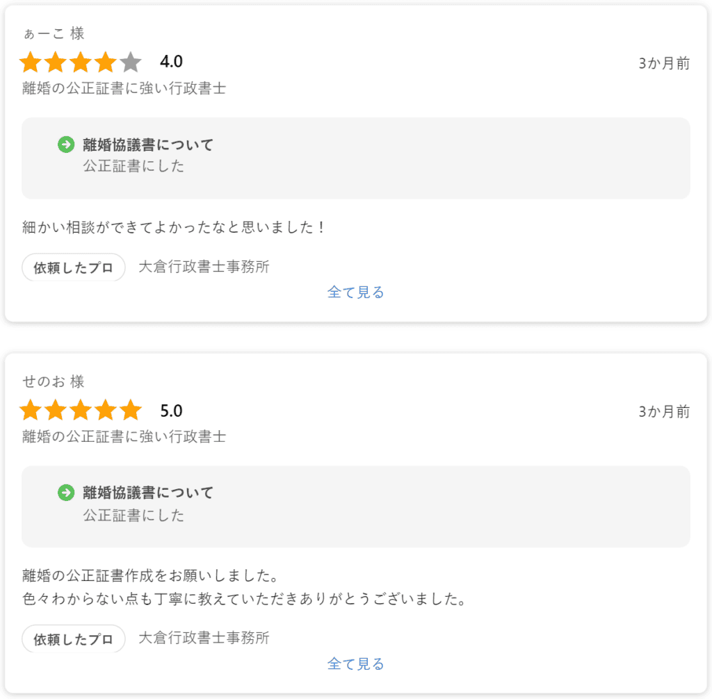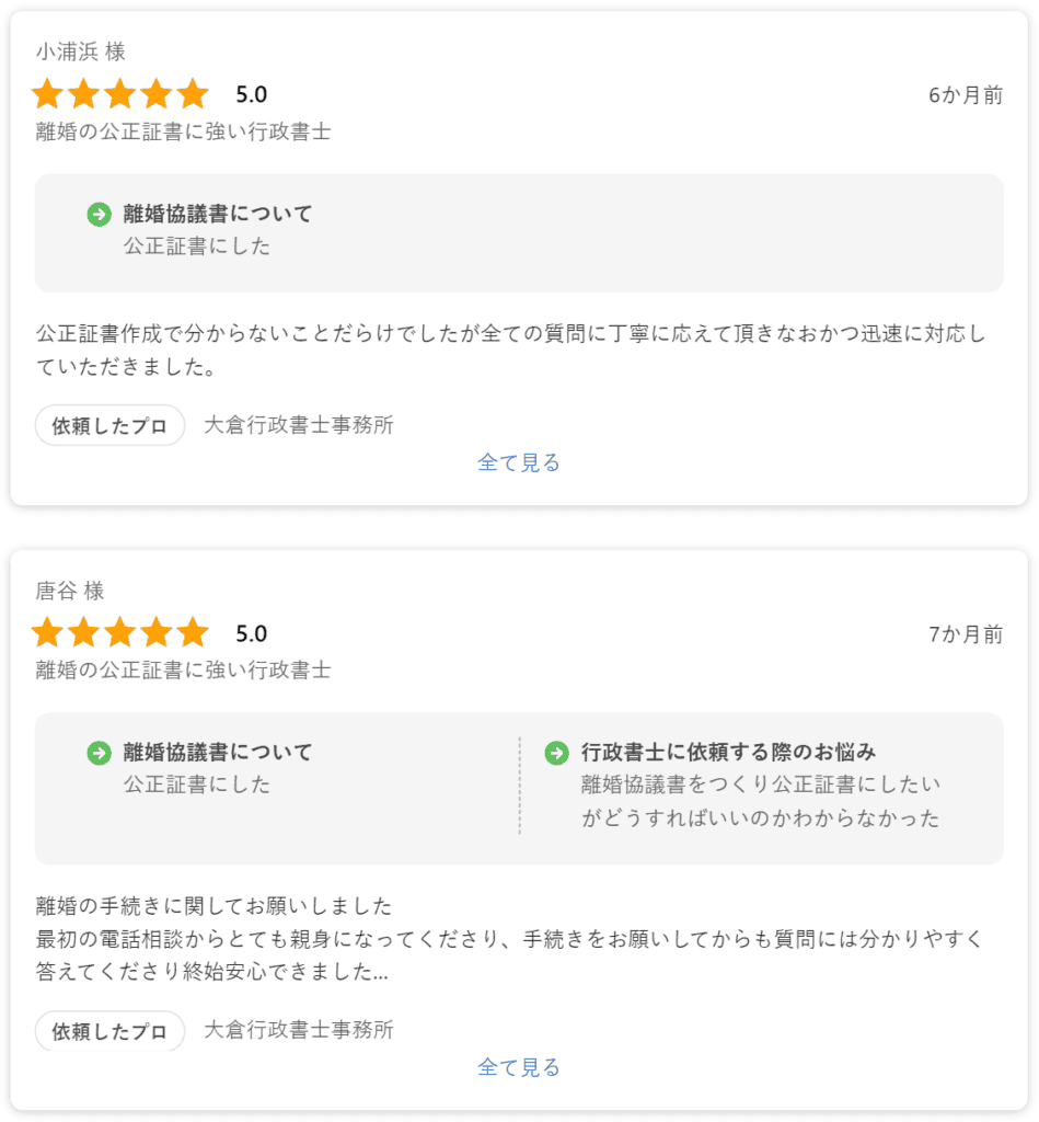 当事務所にこれまでいただいたお客様の声の一部でございます。